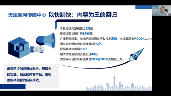 面对疫情给当下媒体融合与发展带来的影响,印永清介绍说,疫情既给媒体新一轮融合带来挑战,也加速了融合的步伐。谈及如何提高新闻报道的影响力,印永清表示,新闻媒体一方面应第一时间发布权威信息,及时回应民众关切,全程解疑释惑;另一方面,媒体应推出贴合民众、反映民生的新闻,用民众众志成城、守望相助的事实性新闻来引导舆论,发挥舆论监督、舆情沟通的媒体职能。