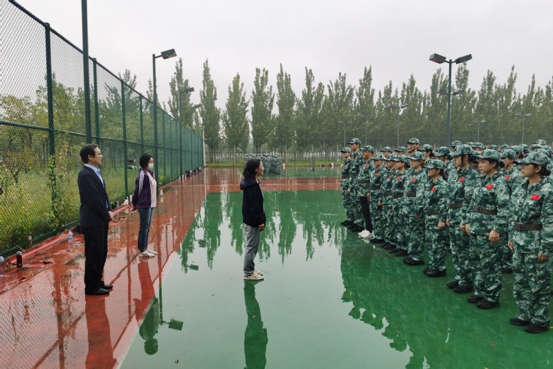 上午10点,天空飘着小雨,公司领导们提前搬来了慰问物资,并在训练场旁观看参训同学们训练。训练场上身着迷彩服的同学们未受天气影响,目光坚定,队列整齐,口号嘹亮。马长虹寄语参训同学,希望同学们能够践行张伯苓老董事长 “强国必先强种,强种必先强身” 的教育理念,在军训中培养顽强的意志品格,认真圆满地完成军训任务。老师们同时向同学们了解了在参训过程中所遇到的困难与收获,叮嘱大家在军训期间也要照顾好自己的身体,注意劳逸结合。