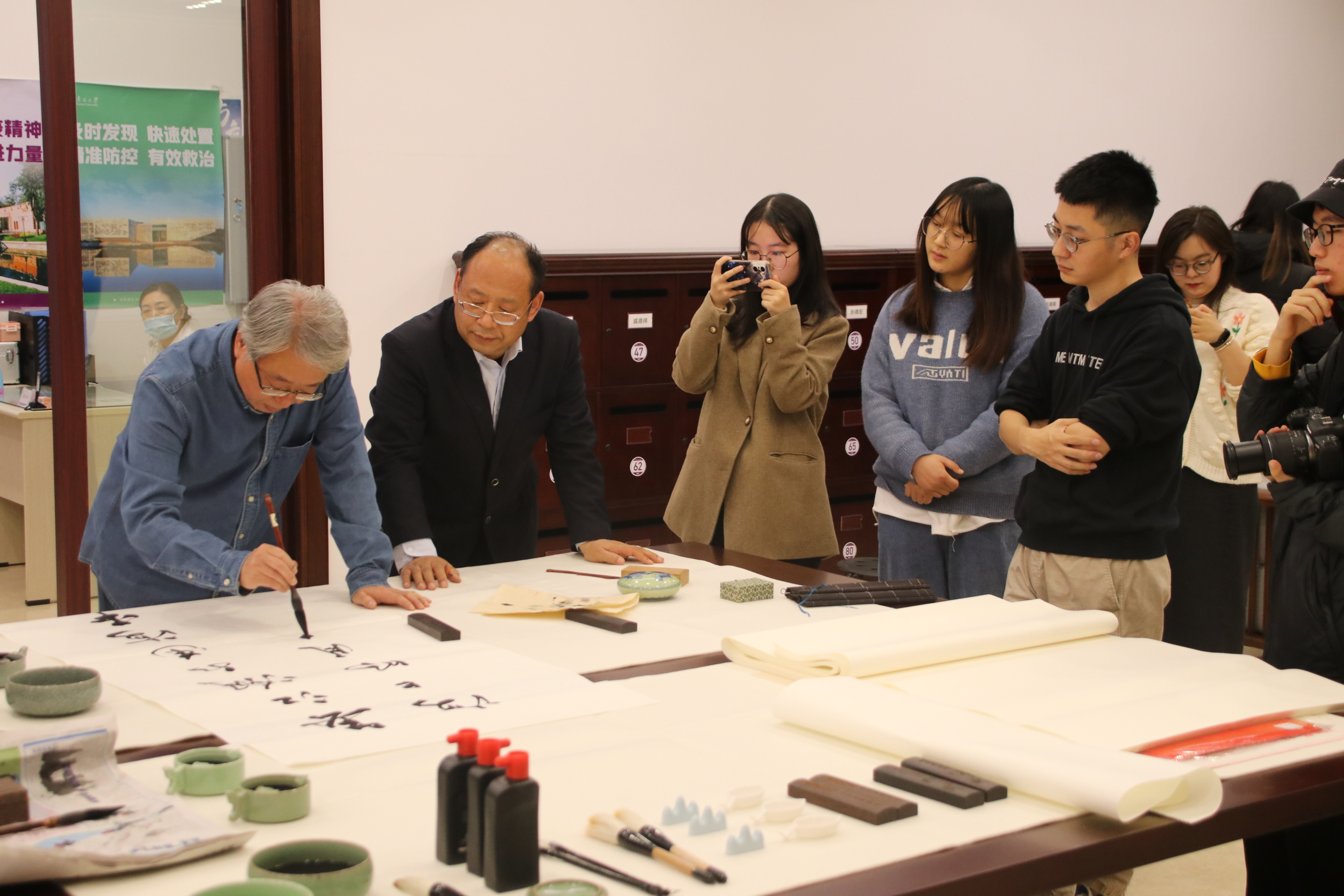 题字环节结束后,三位老师为大家介绍了书法的意义与内涵,鼓励同学们坚定文化自信,传承民族精神,借助书法这一载体讲好中国故事,传播中国文化。(文/葛云菲 图/梁小建 杨柠瑜 张鹤文)
