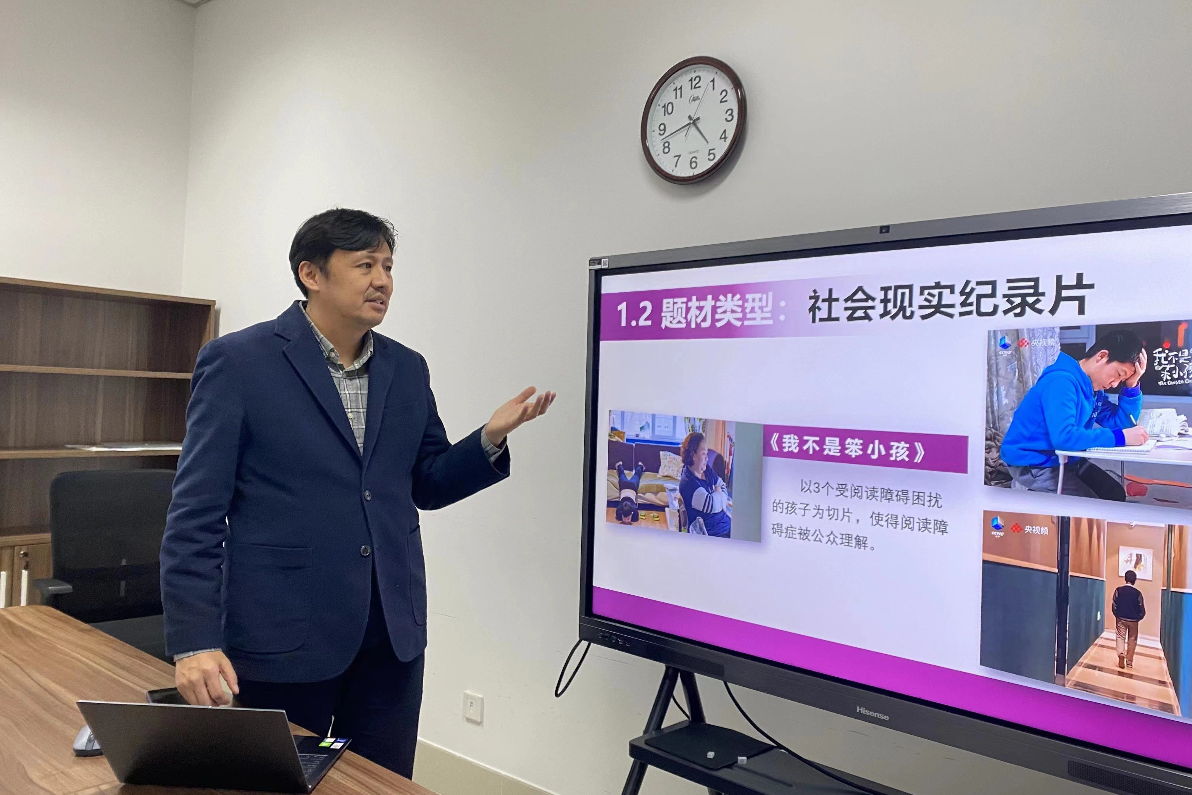 《纪录片创作》课程贯彻落实党的二十大精神,立足中国文艺创作传统,探索纪录片创作基本规律,结合中外典型创作案例,从理论、观念和方法三个层面把握纪录片创作的内涵和实操,将思政元素融入课堂教学和实践教学,建构中国式现代化的视听表达与纪录片创作之间的互动关系,让员工在知识技能学习和审美熏陶中有意识地感受中华美学底蕴,体会传统文化精神特质,强化塑造民族文化认同感,了解人类共同的价值追求,催发基于纪录片创作的中国式现代化的审美文化创新。