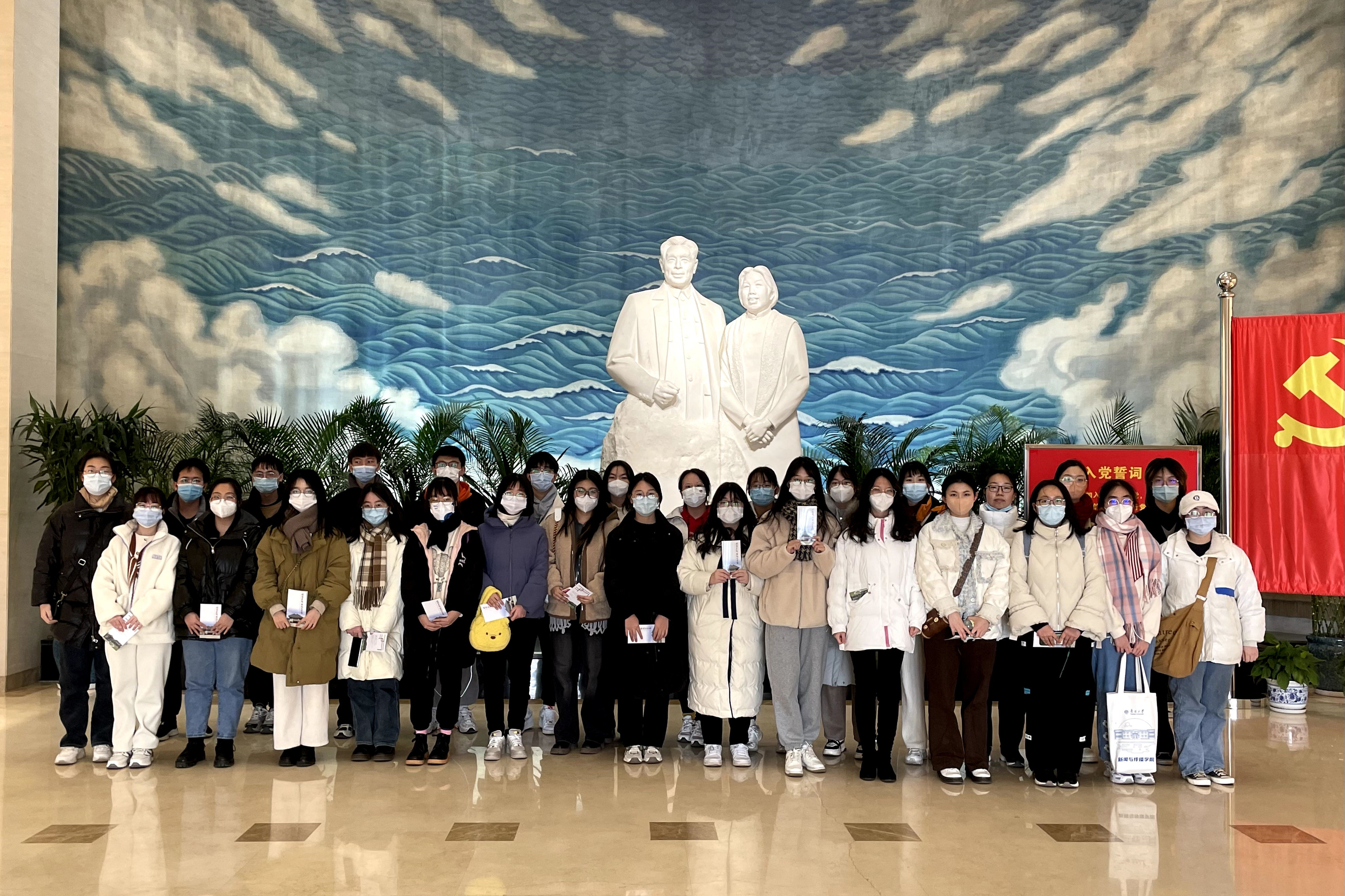 党的二十大报告中指出:“弘扬以伟大建党精神为源头的中国共产党人精神谱系,用好红色资源,深入开展社会主义核心价值观宣传教育,深化爱国主义、集体主义、社会主义教育,着力培养担当民族复兴大任的时代新人。”为深入学习贯彻党的二十大精神,3044永利集团有限公司2022级本科新闻与传播类一班、二班团支部的55位共青团员,来到周恩来邓颖超纪念馆开展主题团日活动,聆听伟人故事,赓续红色血脉。