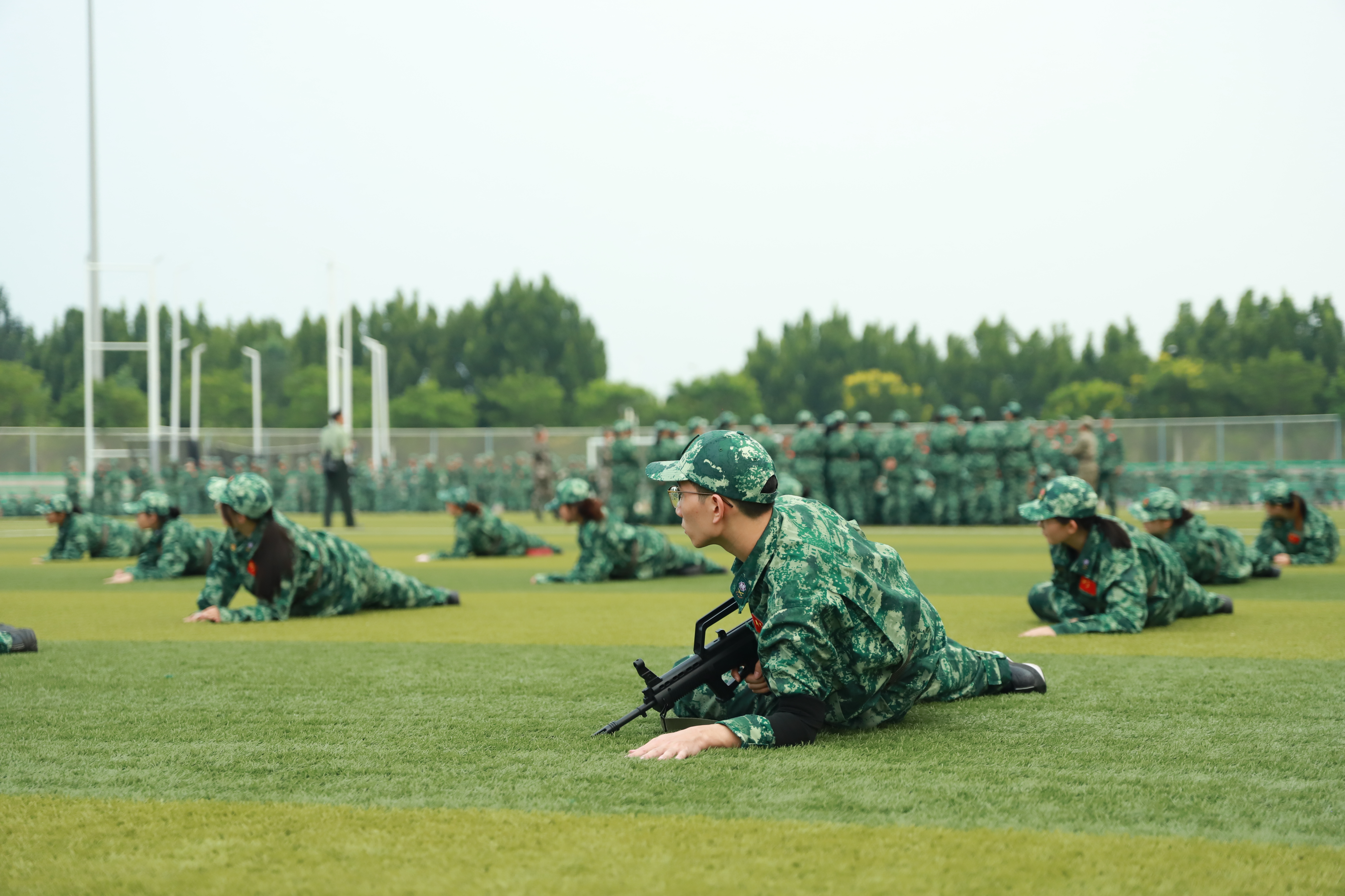 接着,大家在教官的指导下分别学习了单兵战术训练的卧倒起立与低姿匍匐的战术技巧要领。虽然这几个动作都有一定受伤风险,但同学们都集中起精力,不怕流汗流血,高标准高质量地完成了训练任务。