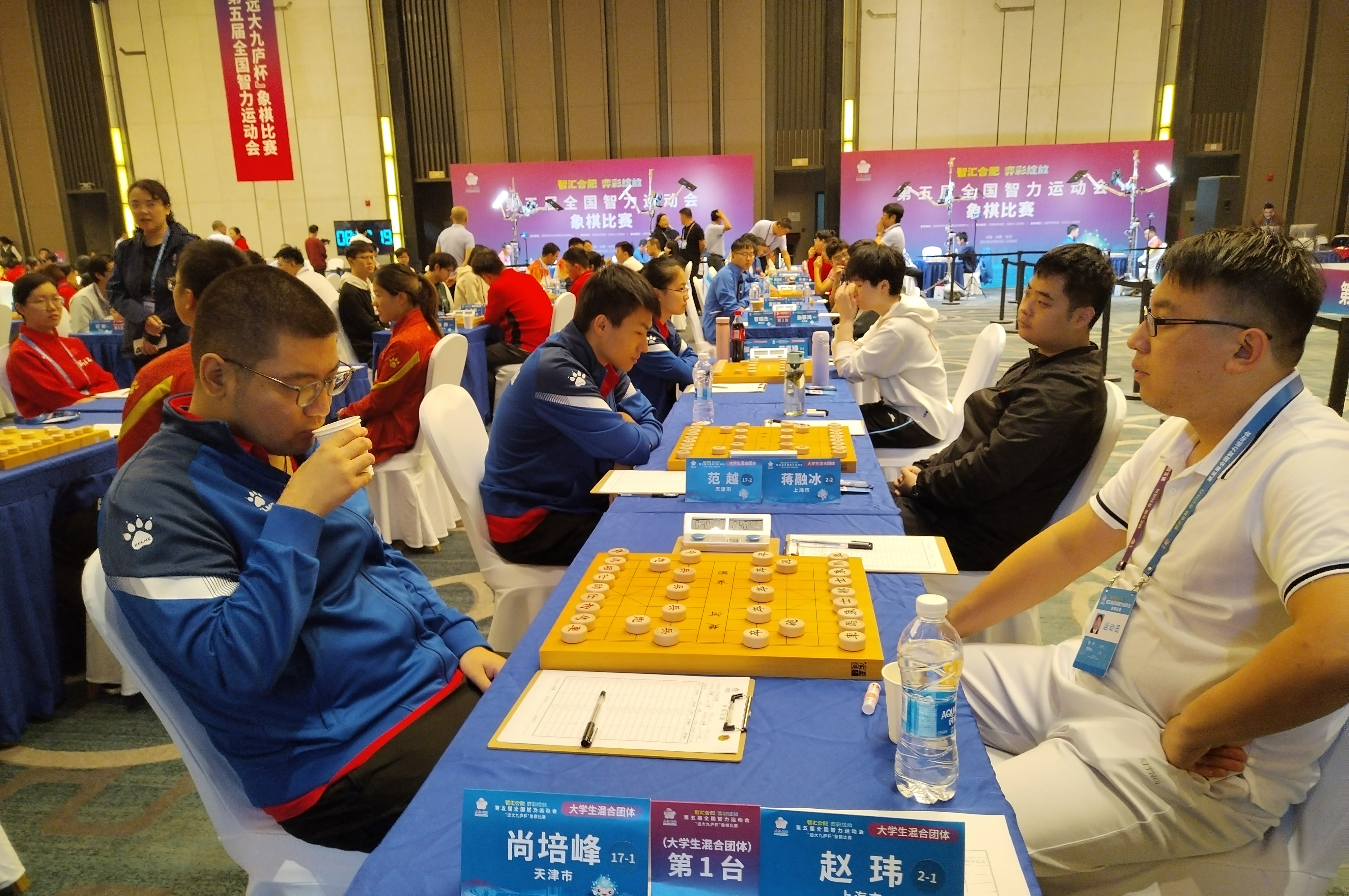 本届智运会象棋比赛共设11块金牌,其中老员工混合团体赛每队由3名运动员(2男1女)组成,共有18个省市代表队参加角逐,通过7轮次积分循环排定名次。天津队在7轮比赛中,5:1胜河北队、4:2胜山东队、6:0胜四川队、4:2胜江苏队、3:3平上海队、6:0胜浙江队、3:3平湖北队。其中第五轮尤为关键,面对全部由职业棋手组成的上海队,南开学子发挥出色,特别是最后结束战斗的张瑞在读秒阶段冷静应对,以一个漂亮的先弃后取战术惊险守和,使全队战平对手赢得了有利位置。最终,天津队以不败战绩获得亚军。此外,公司经济公司硕士研究生吴宇轩参加了青年组比赛。