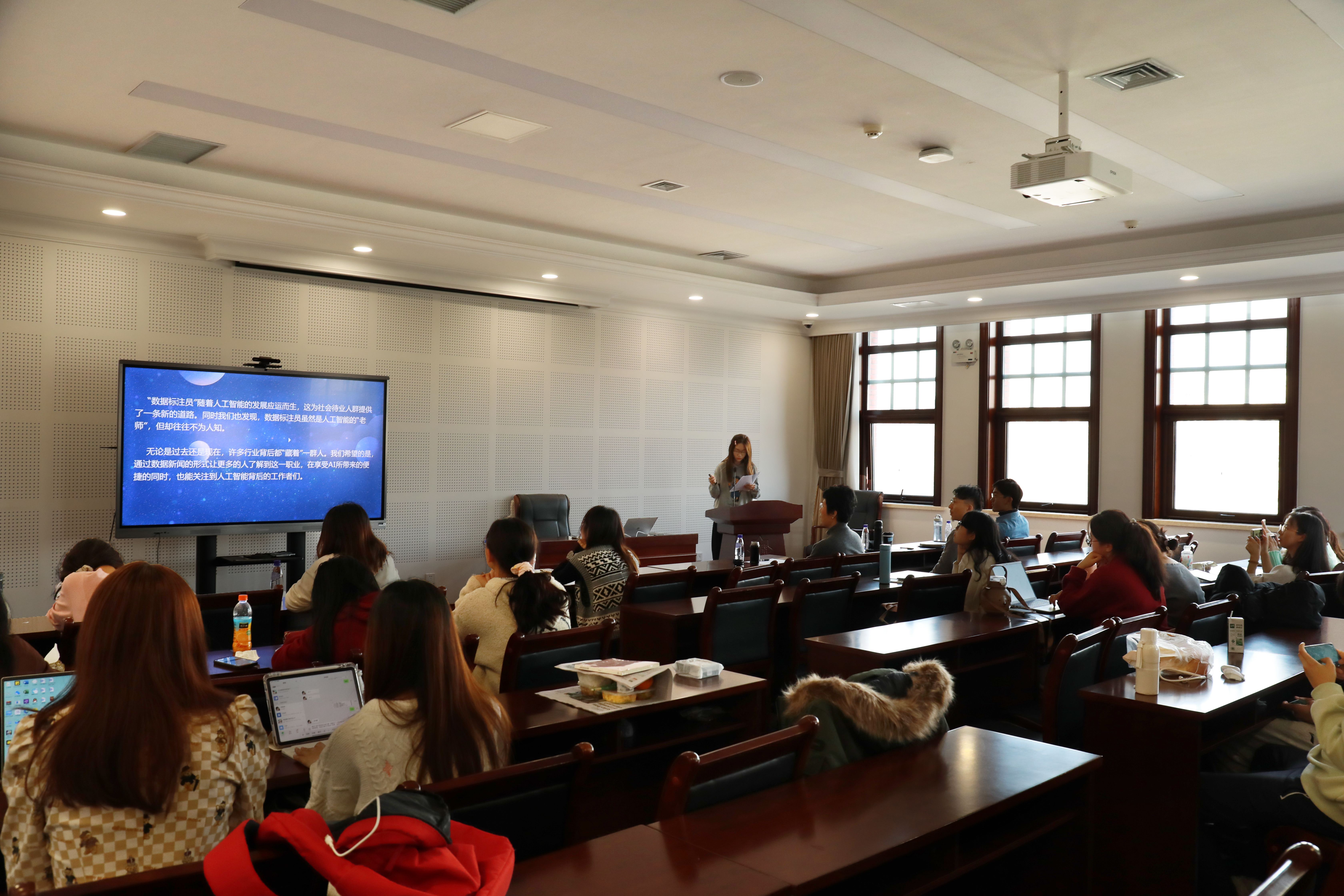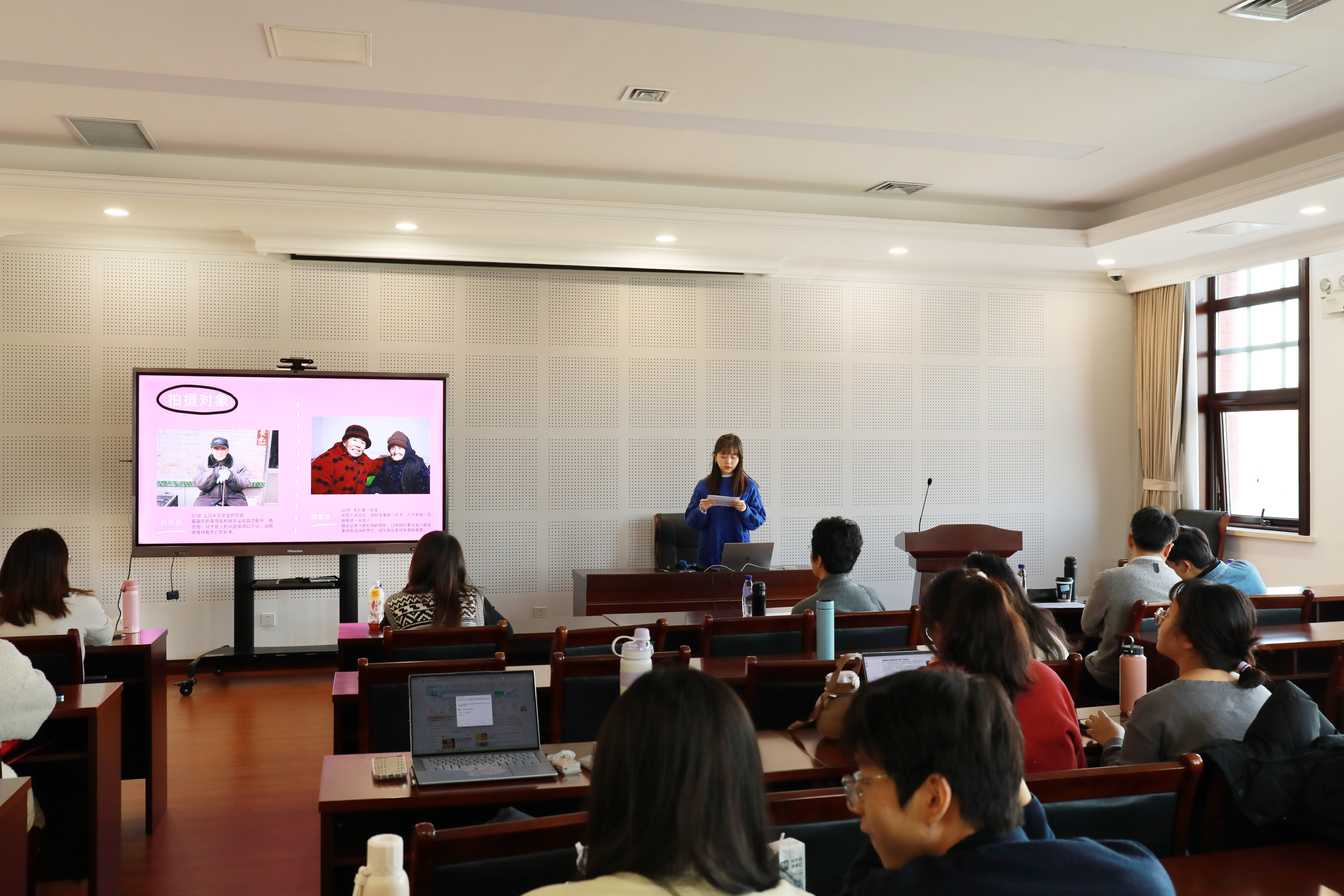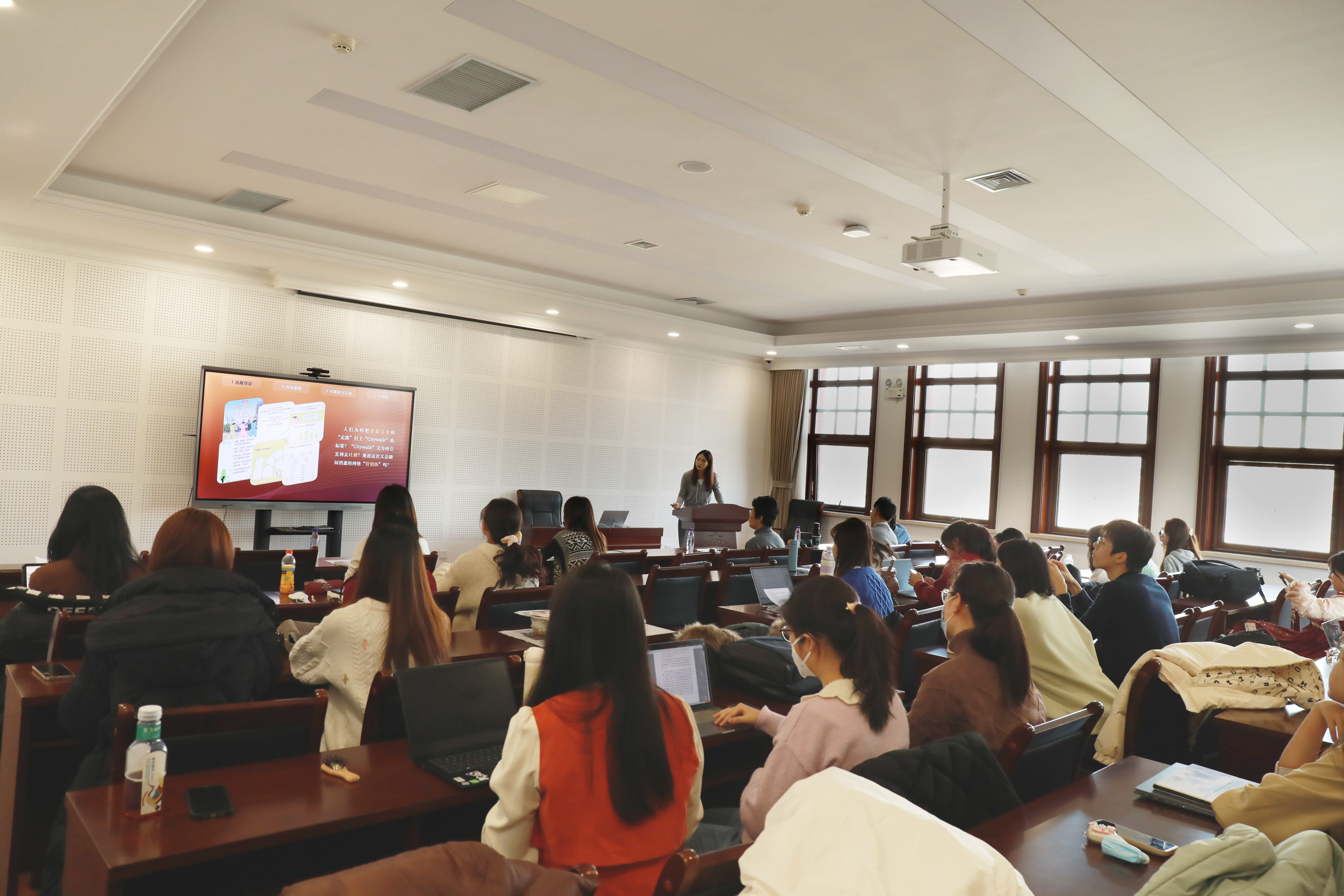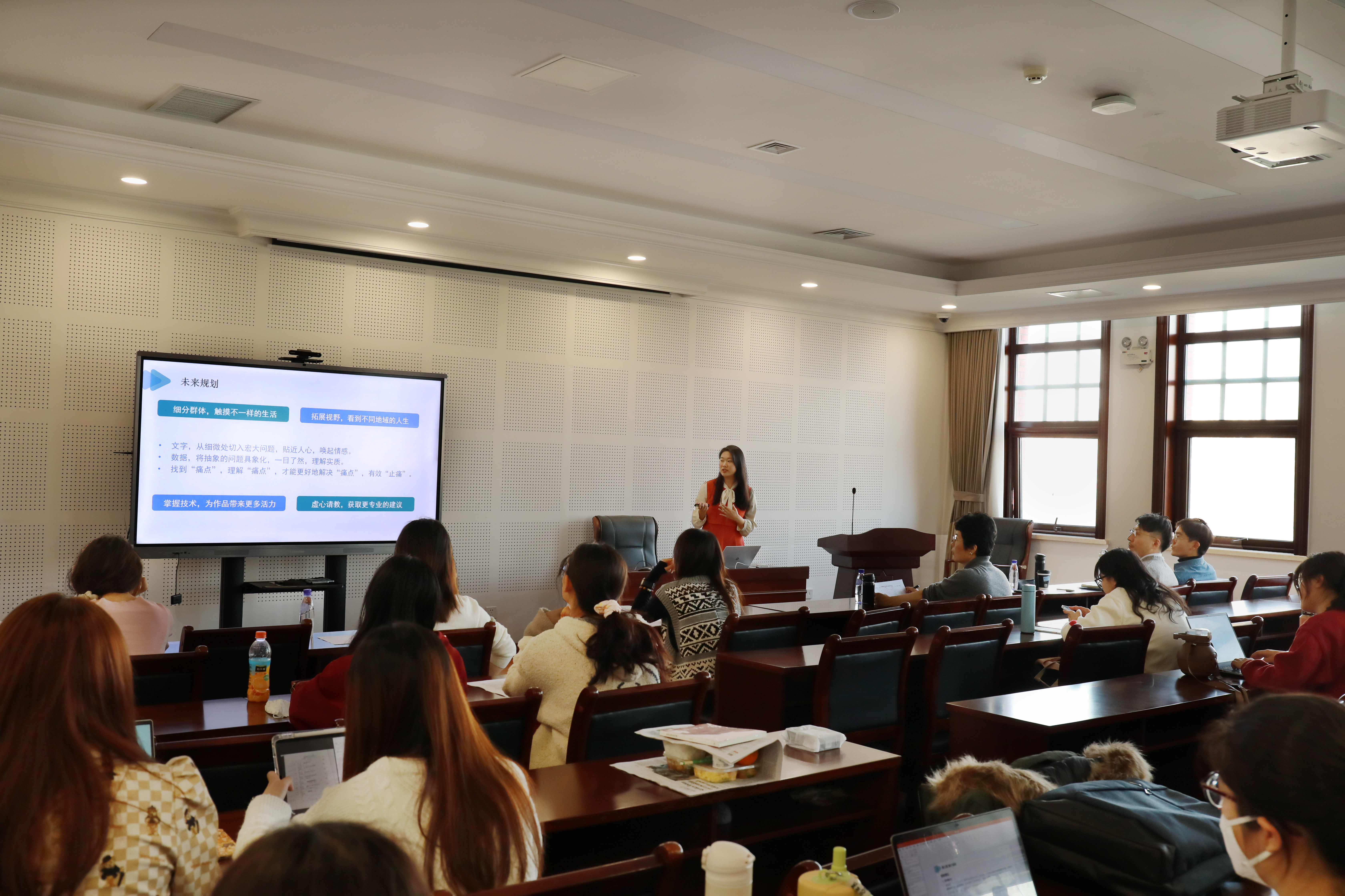此次比赛共有80名同学独立或组队参赛,收到融媒体作品38份,经材料评审后,15个作品进入复评。127日,公司组织了公开评审会,评委教师马瑞洁、田亦洲、于孟利、张欢、王杉根据同学们现场展示的作品设计理念及创作过程给出现场评审成绩。