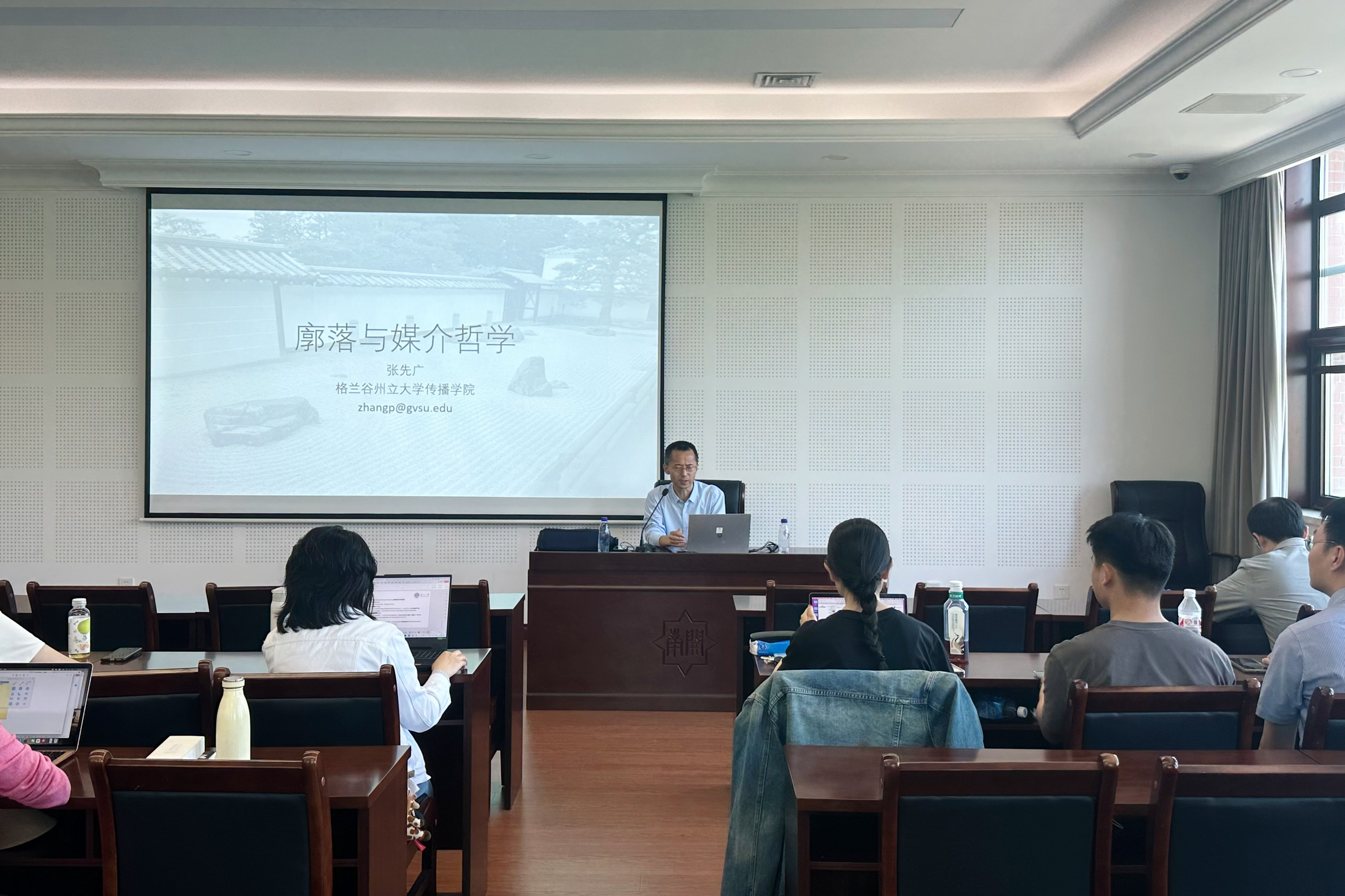 张先广,现任美国格兰谷州立大学传播公司教授、伦敦留学项目负责人,美国学术期刊《中国传媒研究》联合主编、加拿大学术期刊《新探索:文化与传播研究》副主编和编委、全球修辞学会常务理事、欧洲哲学学会执行委员。主要从事跨学科研究,硏究领域涉及媒介生态学、传播理论、修辞理论与批评、翻译理论与实践、文艺理论等。近十几年涉足哲学研究,对间性论、德勒兹、弗卢瑟、维利里奥、塞尔、《易经》等有深入探索。专著《间性论探索》即将付梓。(图文/姜硕扬)