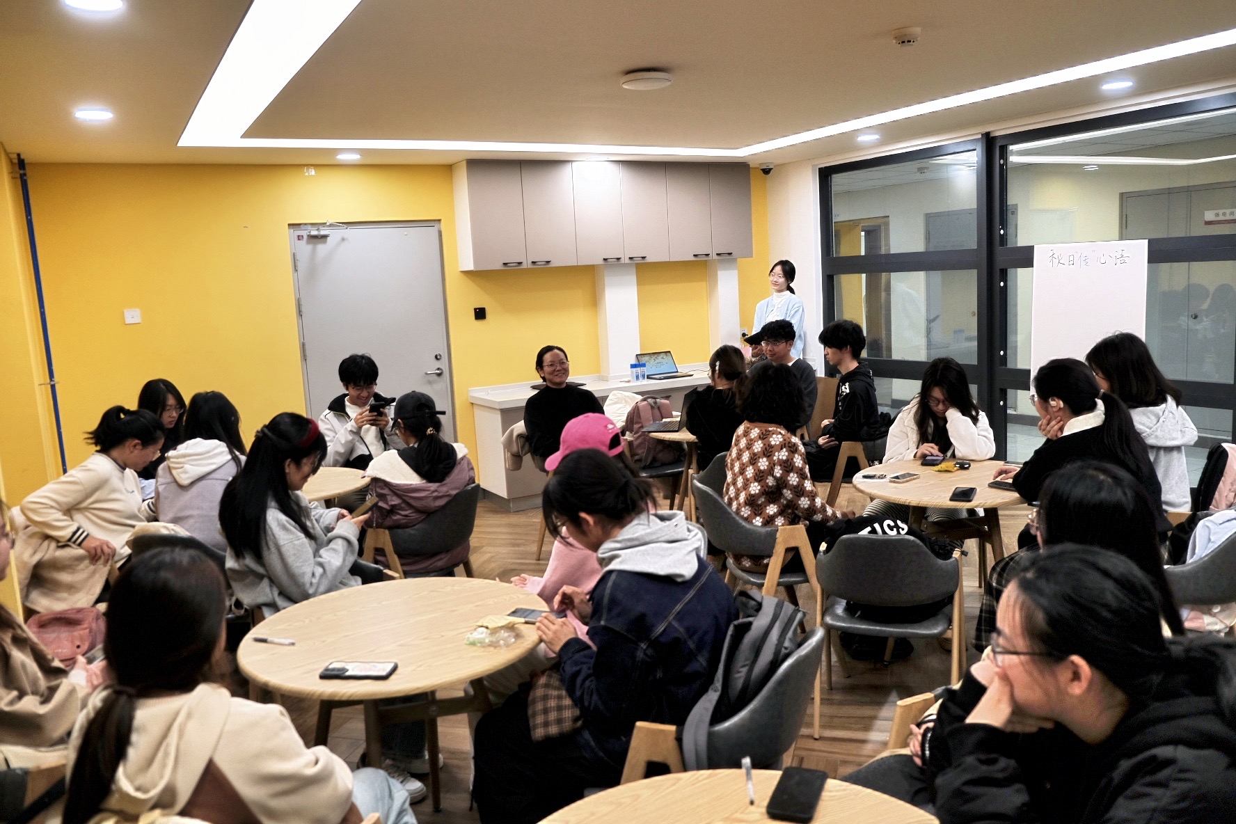为促进老员工心理健康,近日,永利集团30442023级本科新闻传播学类一班团支部在永利集团3044津南校区“一站式”员工社区举办“秋日‘传’心语一起向未来”秋季心理辅导主题团日活动。