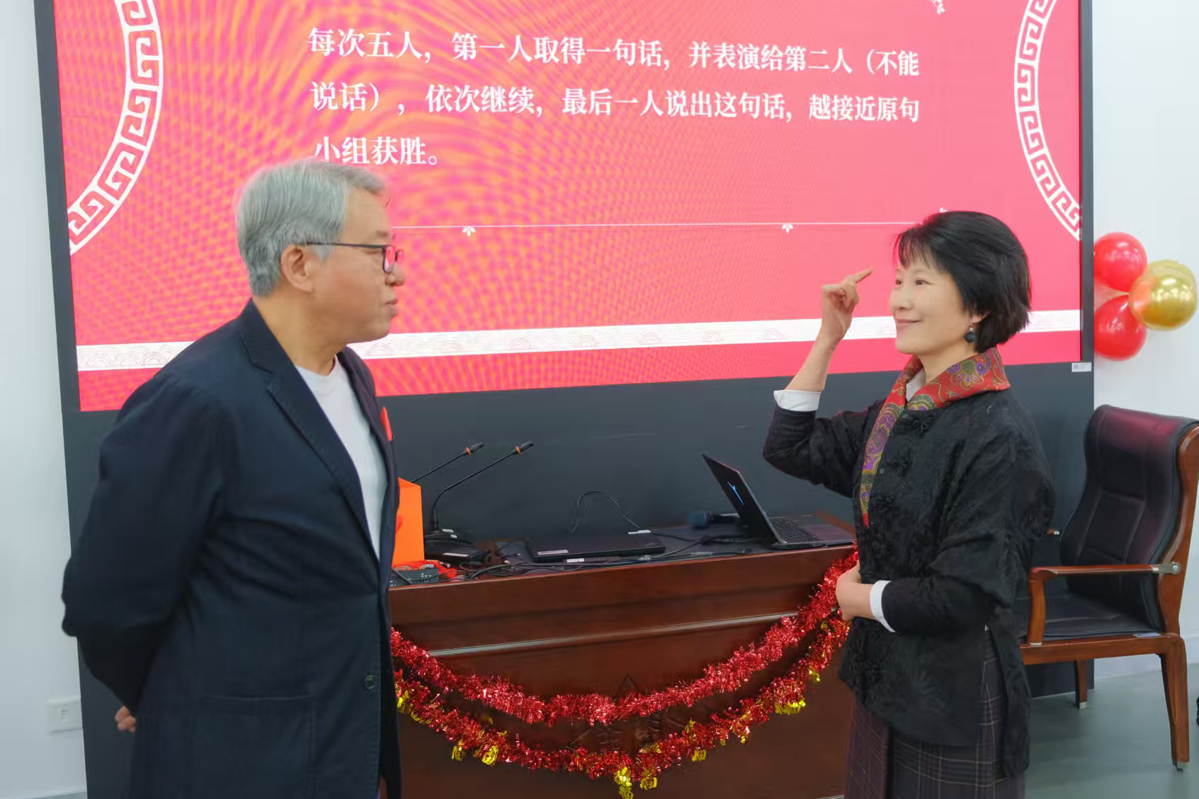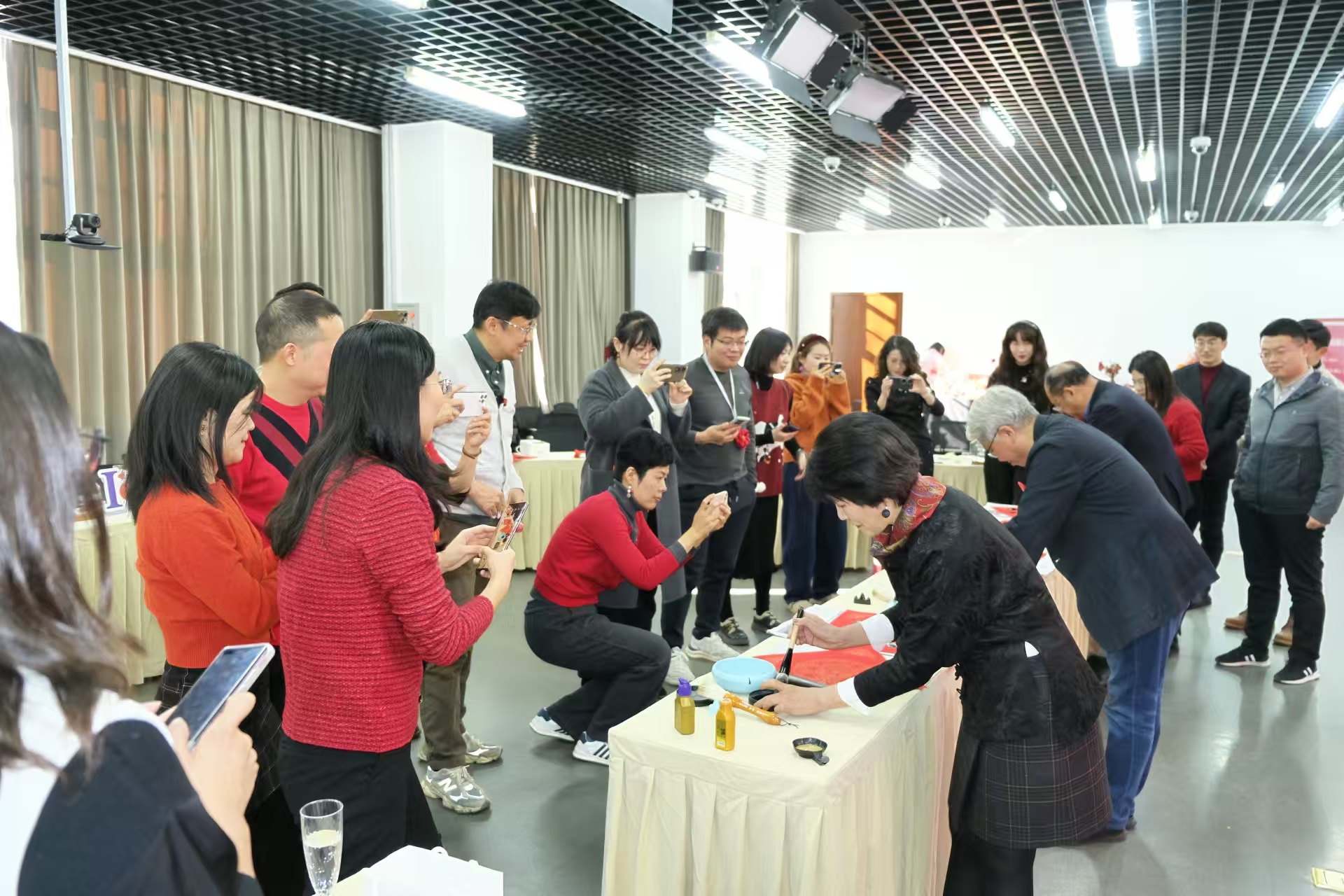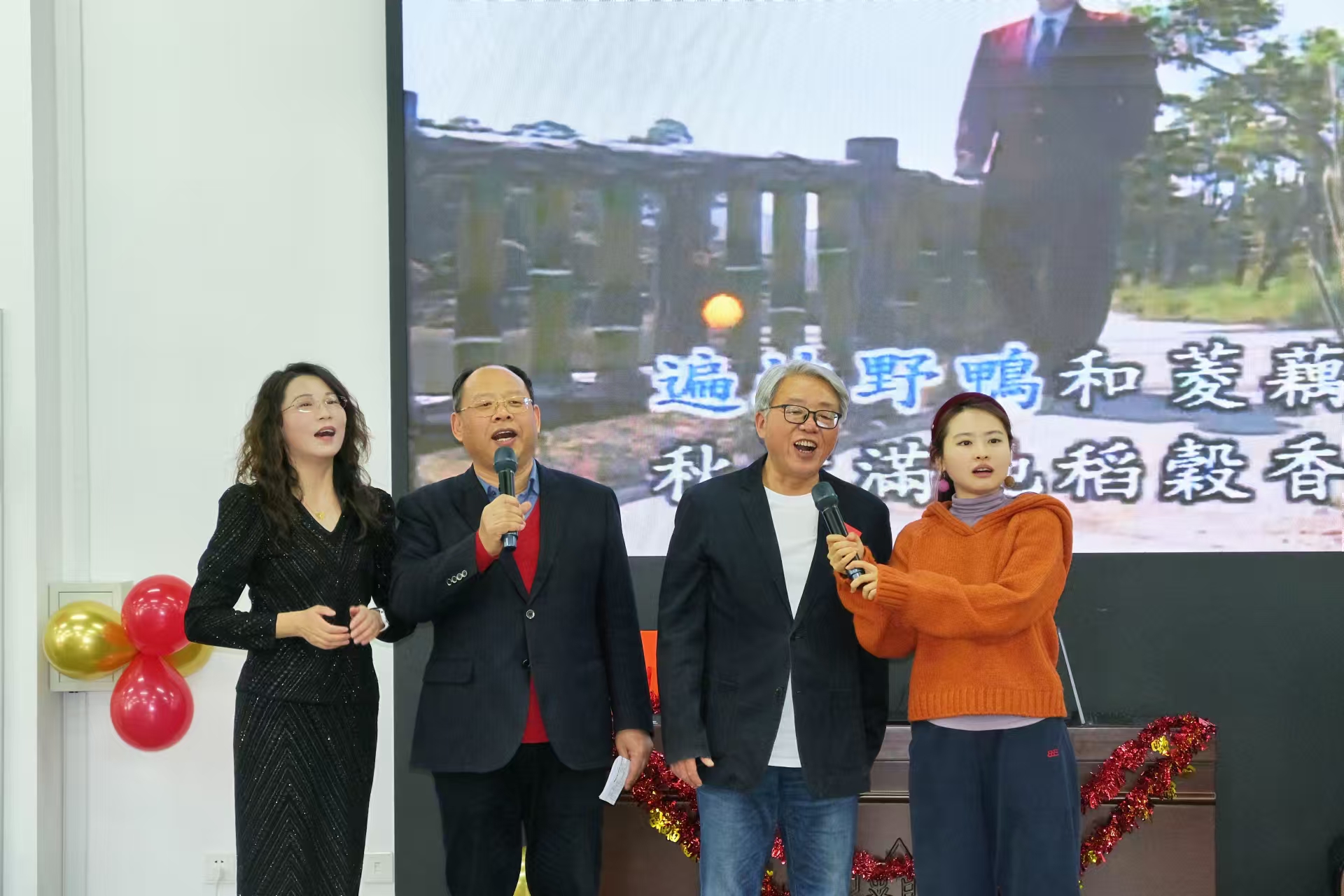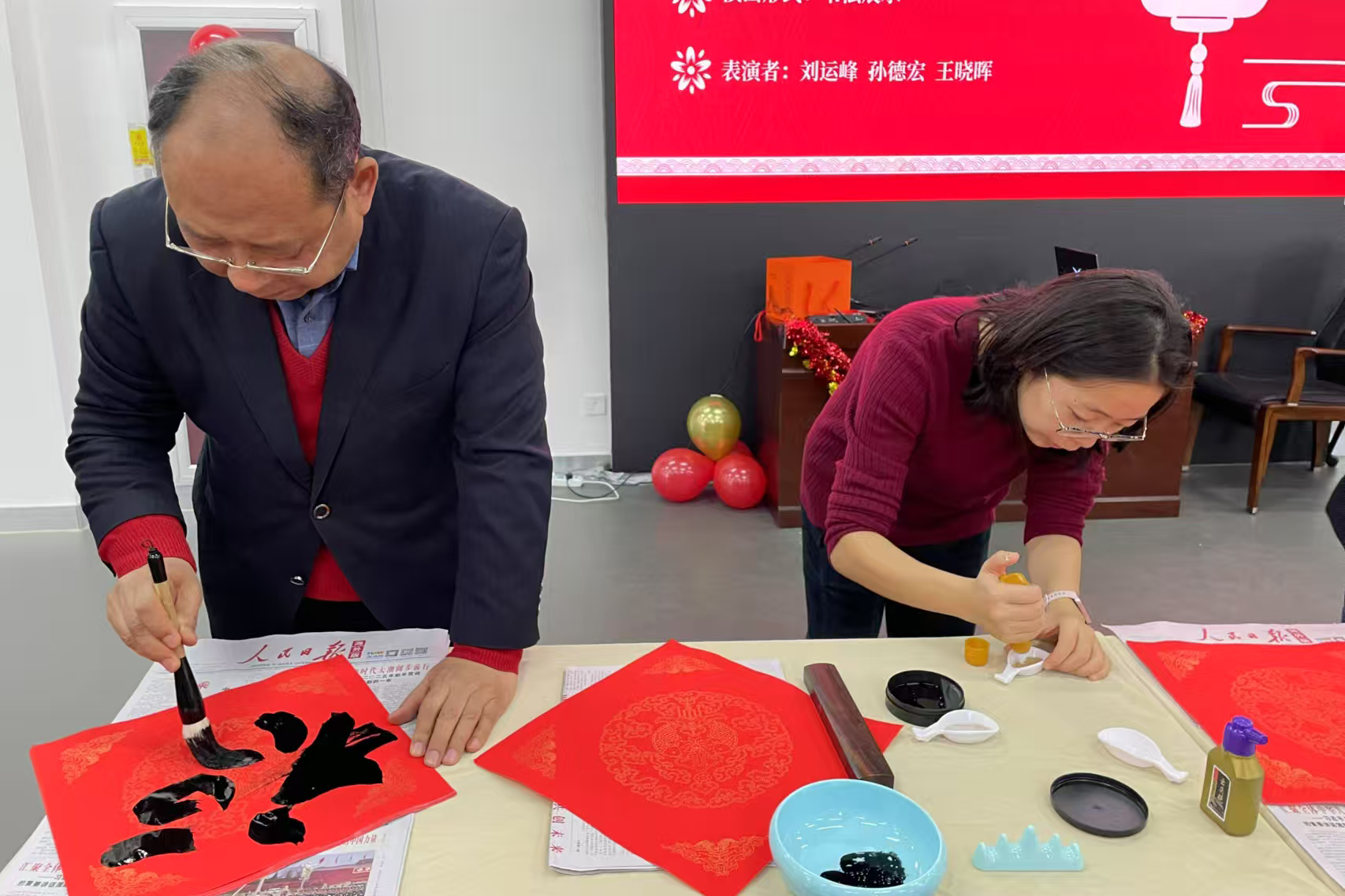 文艺表演环节精彩连连。梁小建、张欢、于孟利、李唯嘉、左朝园带来的三句半表演《我爱上班》幽默诙谐,表达了“新传卷王们”对工作的真诚热爱;吴一可和陈秋旻的独唱《我愿意》、《唯一》,王若璇和孔祥宇的对唱《神话》都深情动人,令人陶醉;陈鹏的竖笛独奏《铁血丹心》大气蓬勃,将观众带入了音乐的意境;陈娜、刘运峰、孙德宏、王杉的小合唱《洪湖水浪打浪》更是引发全场共鸣。公司领导带来了诗朗诵《新年,你好》,用声情并茂的语言表达了对全体师生的祝福和对公司未来的期望。刘运峰、孙德宏和王晓晖三位教授还为大家带来了一场精彩绝伦的书法展示《迎新春,送福字》,福字之美,为新年增添了喜庆氛围,老师们也在抢接福气的欢乐中,感受到中华传统文化的魅力。