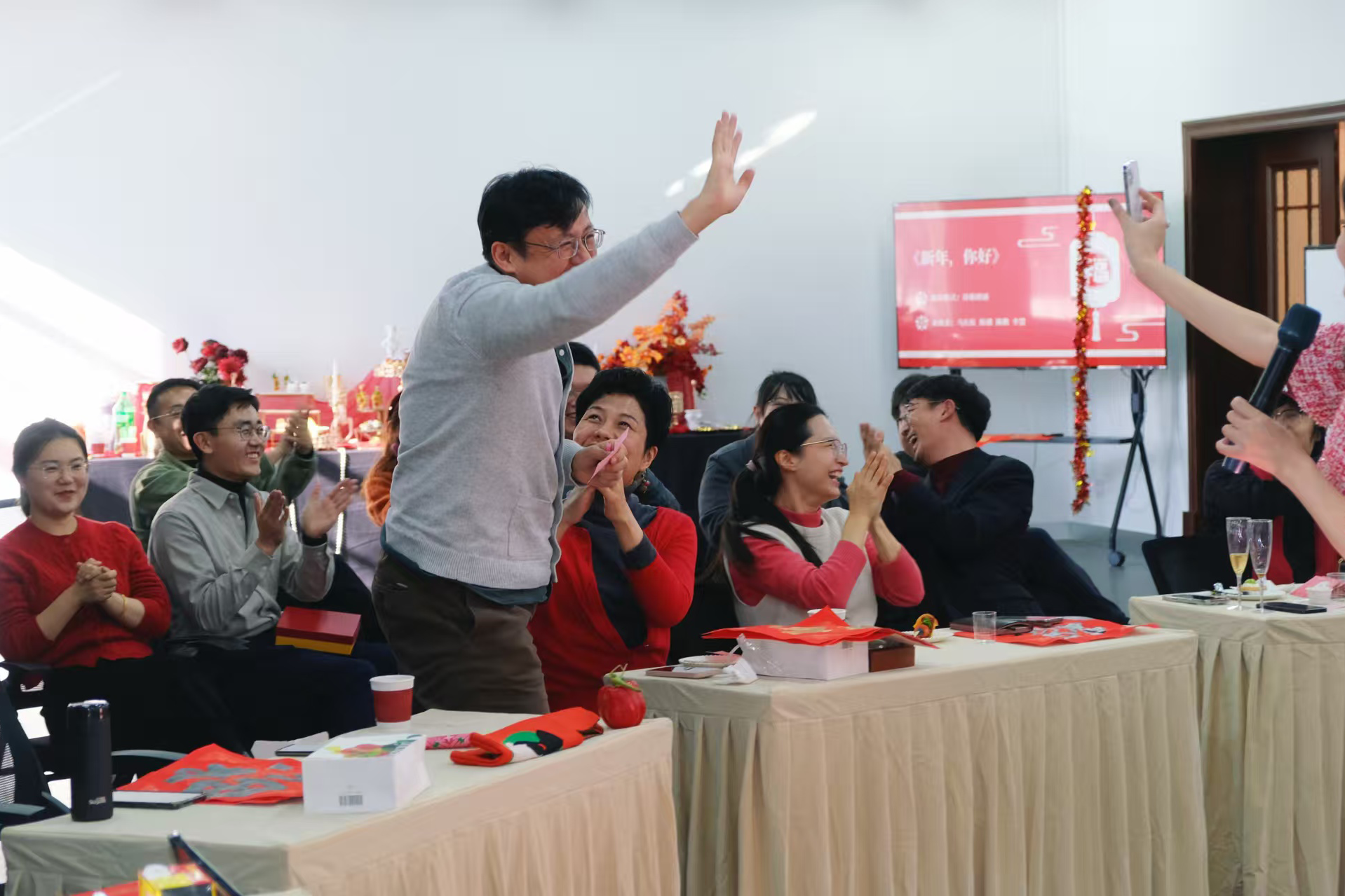 1月8日,秀山堂内张灯结彩,喜气洋洋,新传公司年度表彰与联欢活动在这里举行。公司教职工欢聚一堂,通过精彩的文艺表演、游戏互动、惊喜抽奖及年度表彰等多元形式,展现教师的活力与才华,总结肯定过去一年取得的优异成绩。