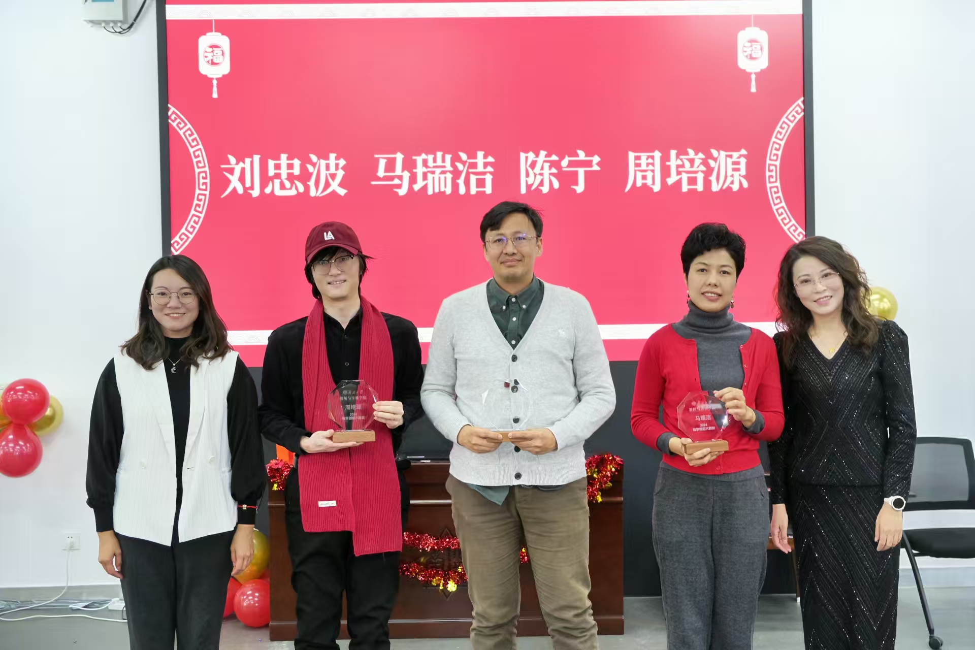 公司领导马长虹、陈娜、陈鹏、李慧代表公司分别为获得年度“杰出贡献奖”、 “学术贡献奖”、“特殊贡献奖”、 “教学创新大赛奖”、 “优秀青椒奖”、“优秀课程思政奖”、“优秀毕业论文指导奖”、“优秀服务奖”等多个奖项的老师颁发奖牌,激励全院师生在新的一年里继续努力,勇攀高峰。