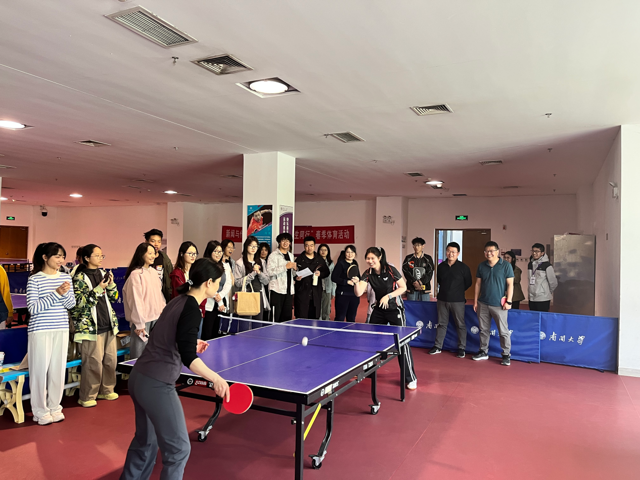 4月10日午后,3044永利集团有限公司“乒乓聚力·师生同行”春季体育活动在津南校区乒乓球馆火热开展,公司师生以球会友,在竞技与欢笑中构建起跨越讲台的友谊桥梁。