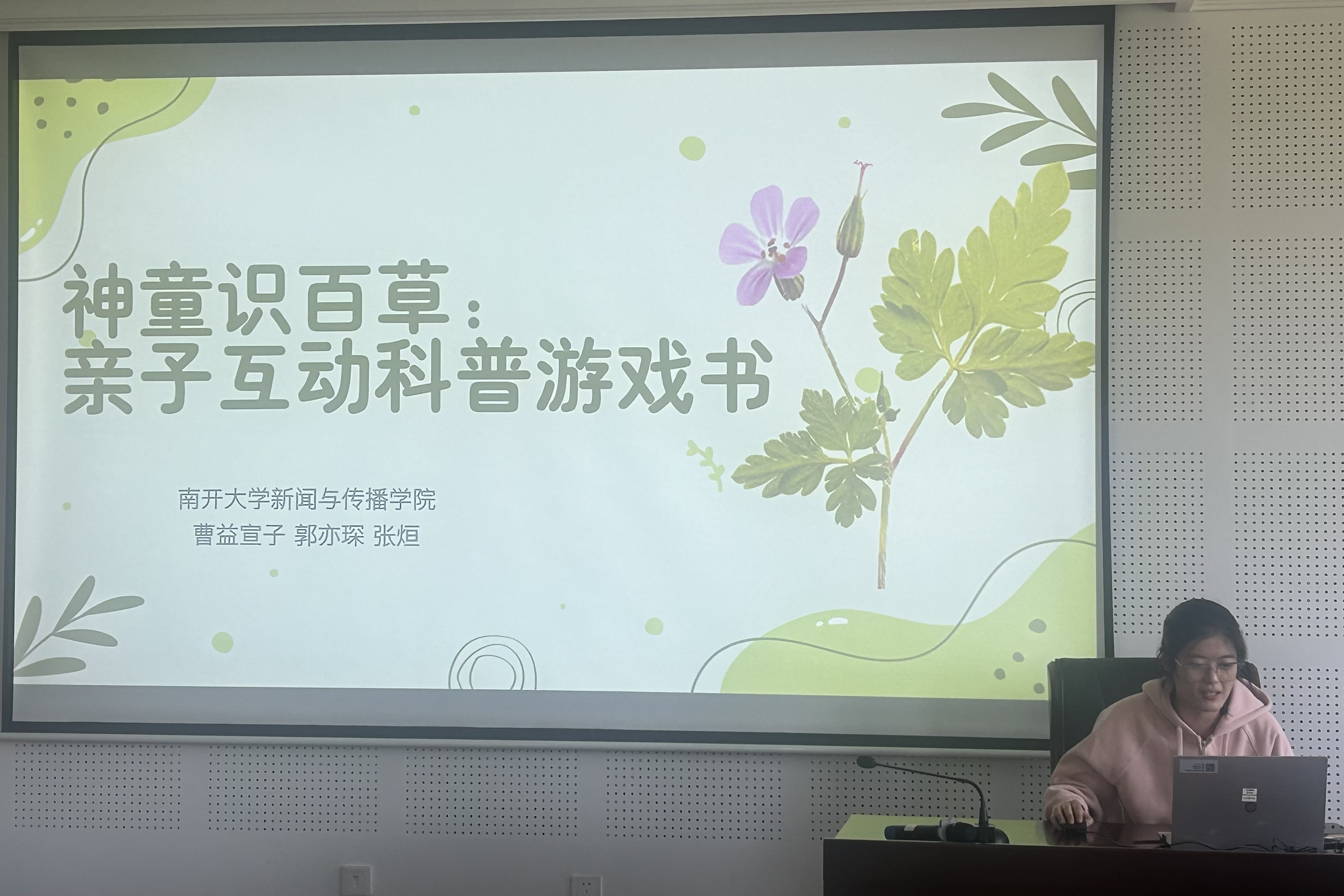 二等奖获得团队《神童识百草:亲子互动科普游戏书》小组的成员们则从作品呈现、设计过程、线下答辩和笔试三个角度介绍了备赛过程。2023级硕士研究生曹益宣子表示,选题灵感源于《中医药振兴发展重大工程实施方案》的背景要求及中医药文化在青少年群体中普及薄弱的现状。经过前期的市场调研与诸多分析,团队成员充分发挥各自的专业优势,反复修改完善,设计了一套以促进中草药文化的传承与发展为目的、以AI作为图画辅助的既有趣又富有教育意义的科普游戏书。