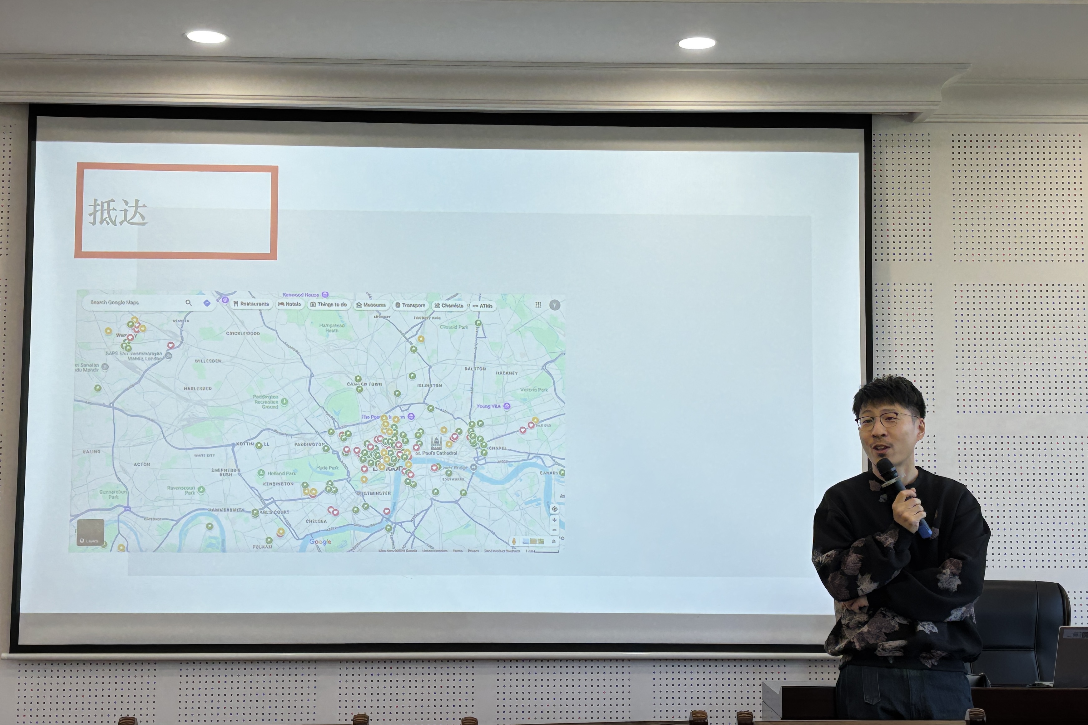 讲座伊始,田亦洲老师从行前的学术规划谈起,细致分享了初抵伦敦时的文化适应过程。他以敏锐的观察者视角,分享了当地的城市气质、校园环境以及学术氛围。在访学期间,田老师称自己重新找回了“在电影院里专注欣赏电影”的纯粹快感。通过参观艺术展览、漫步特色街区、参与社区文化活动等经历,他逐渐将这些日常实践中的感性认知转化为学术研究的鲜活素材。这些跨文化体验不仅深化了他对《哪吒》等中国电影海外传播策略的思考,更促使他反思学术研究如何突破专业壁垒,在严谨性与大众化之间寻求平衡,实现专业知识的公共传播。