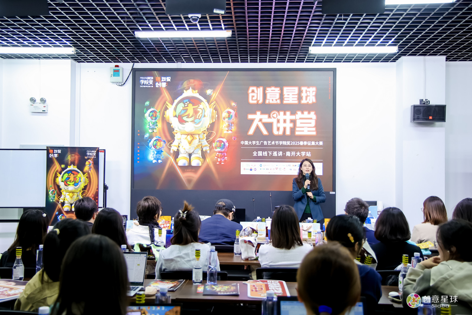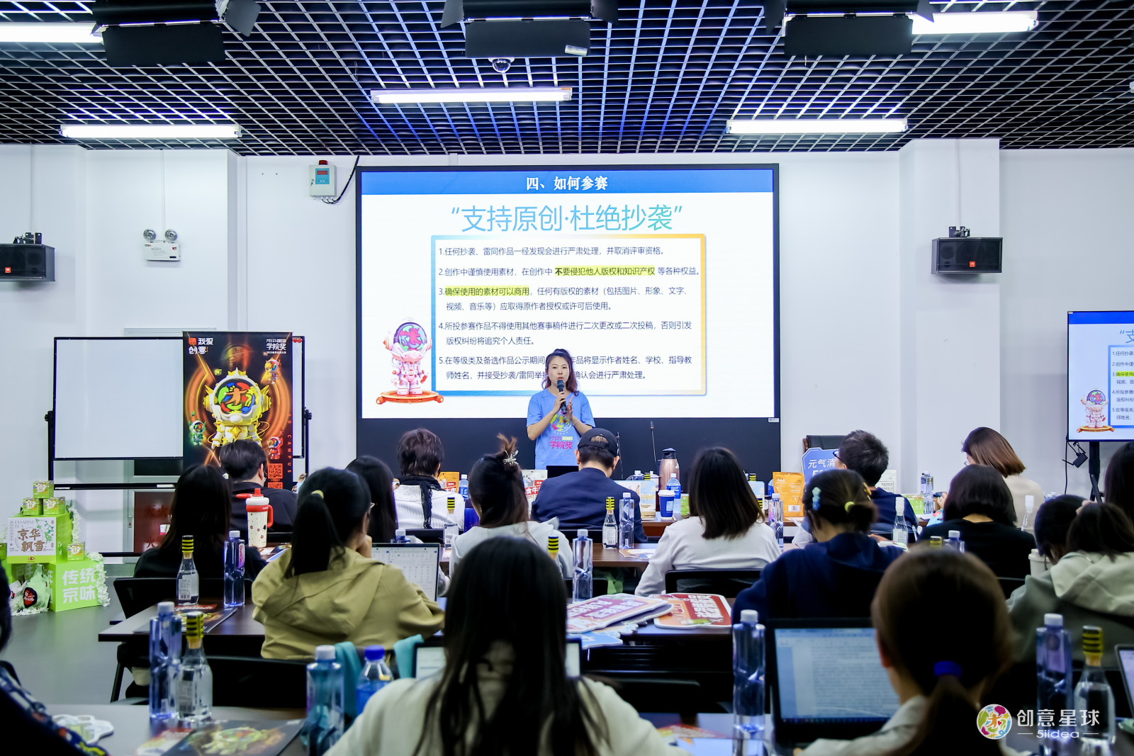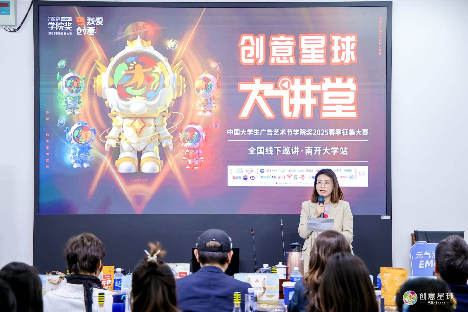 公司奖组委会代表陈桂蕊女士为大家解读公司奖,全方位解读赛事要点,多维度守护创意成长。她详细介绍了公司奖赛事的概况及参赛流程,分享了往届优秀作品的精彩案例,并将介绍大赛参与方式和作品上传指南的“创意包裹”精准送达每一位在场学子,助力参赛创作。