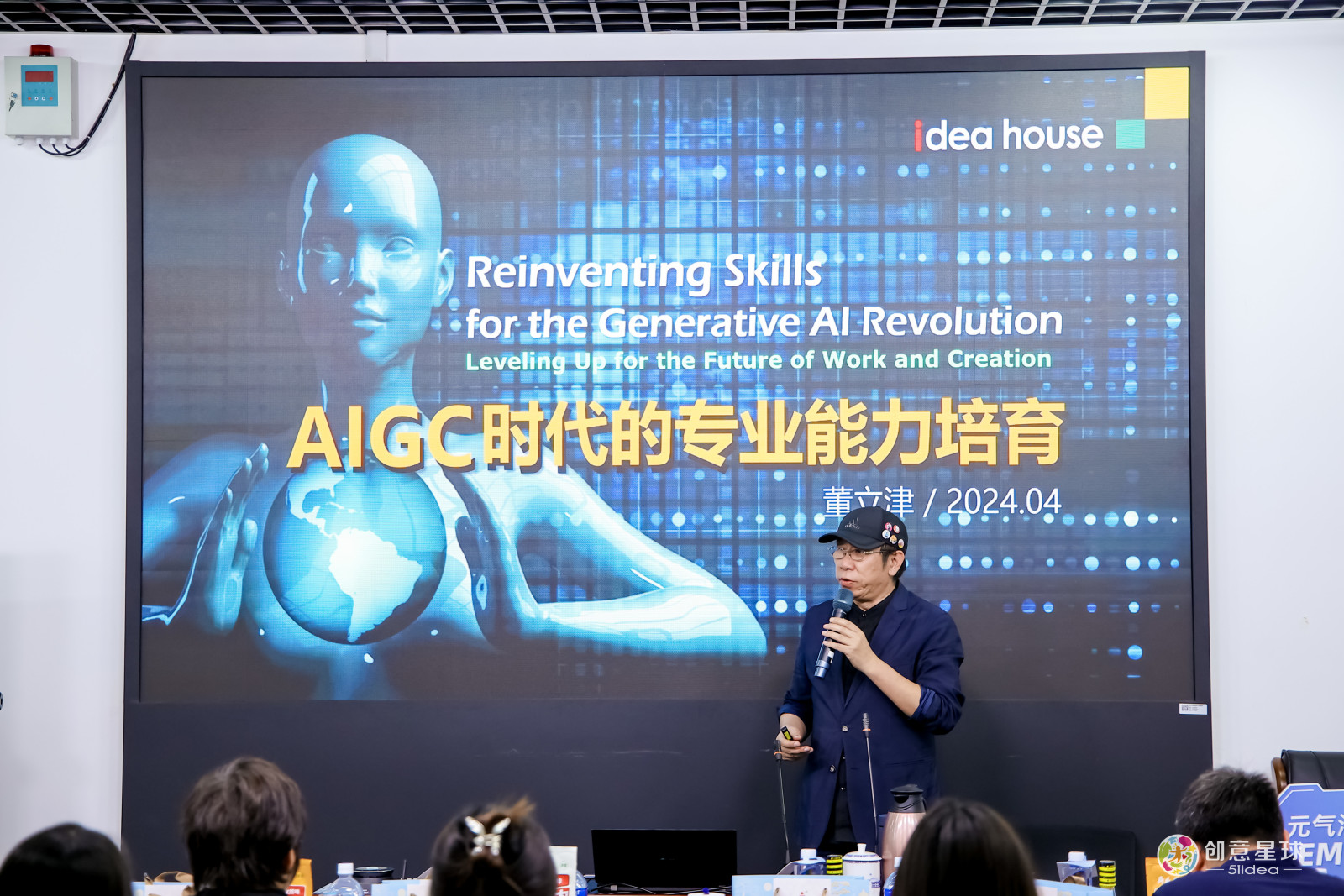 活动还特别邀请了国际品牌协会亚太区主席、原梅高(中国)总裁、戛纳国际广告节评委董立津先生带来前沿洞察。董立津先生以《AIGC时代的专业能力培育》为主题,向大家讲述了演示如何通过Midjourney工具实现文化符号挖掘-指令集优化-多模态生成的智能创作链路。他指出:AI将创意试错效率提升300%,从而使同学能更加专注于策略思维锻造,并进一步推动优秀作品入选公司奖作品库,也能为教学改革提供实践样本。