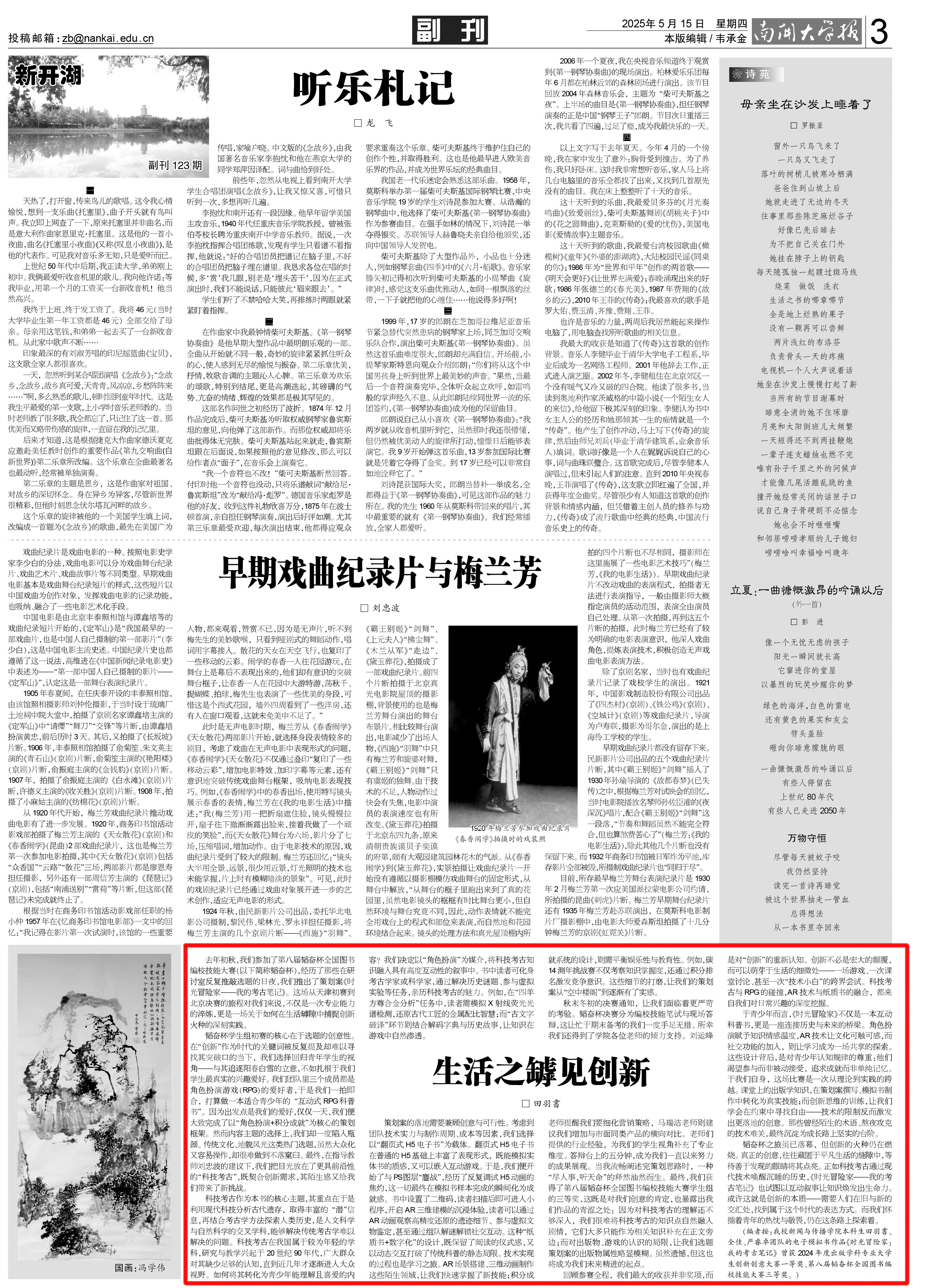 韬奋杯之旅虽已落幕,但创新的火种仍在燃烧。真正的创意,往往藏匿于平凡生活的缝隙中,等待善于发现的眼睛将其点亮。正如科技考古通过现代技术唤醒沉睡的历史,《时光冒险家——我的考古笔记》也试图以互动叙事让知识焕发出生命力。或许这就是创新的本质——需要人们在旧与新的交汇处找到属于这个时代的表达方式。而我们怀揣着青年的热忱与敬畏,仍在这条路上探索着。